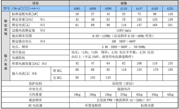 1 額定容量為200V系列時輸出電壓220V時,400V系列為輸出電壓是400V時的容量。